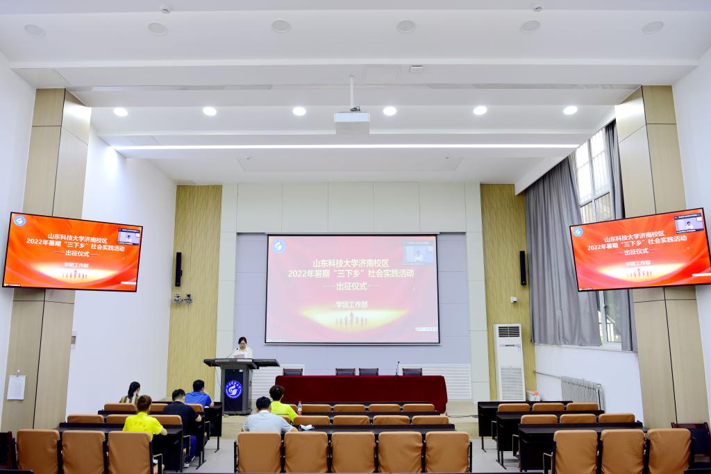 7月12日下午,濟(jì)南校區(qū)舉行2022年暑期“三下鄉(xiāng)”社會實(shí)踐活動線上出征儀式。校團(tuán)委副書記、濟(jì)南校區(qū)學(xué)團(tuán)工作部副主任韓冰,一院兩系團(tuán)委(總支)書記,指導(dǎo)老師、校級重點(diǎn)團(tuán)隊(duì)成員100余人參加儀式。財經(jīng)系團(tuán)總支書記齊斯文主持活動。