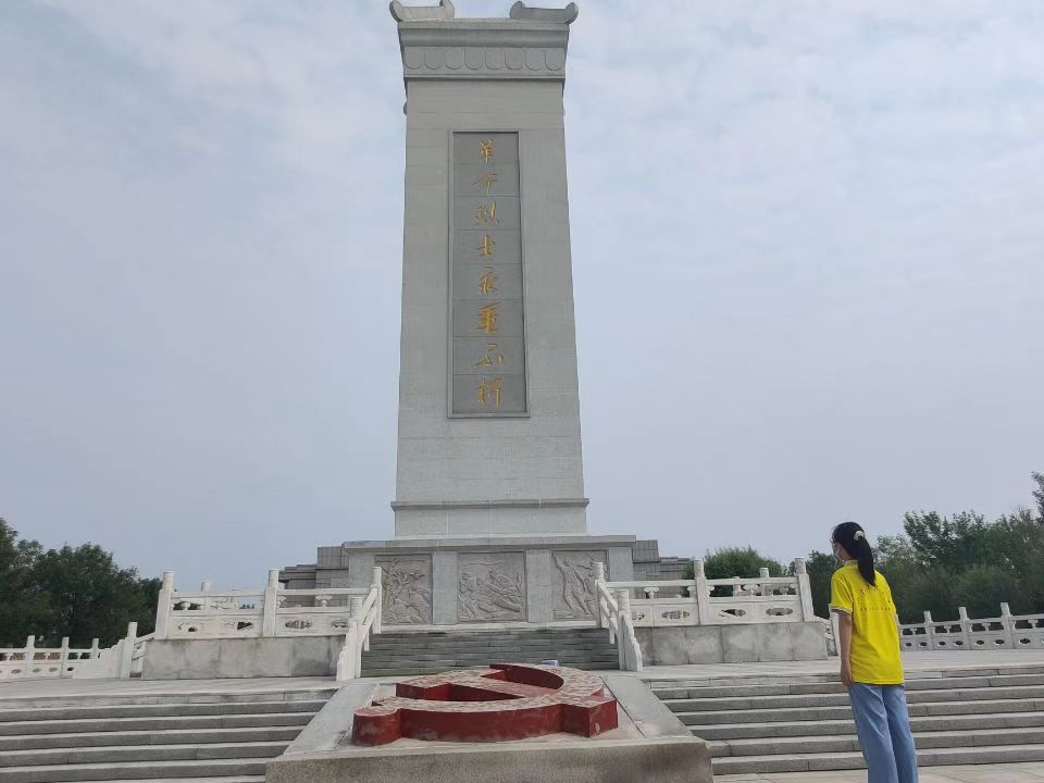 第二站,成員們來到位于東營市河口區(qū)的河口烈士陵園。在河口烈士陵園,看到莊嚴(yán)肅穆的革命烈士紀(jì)念塔的那一刻,一種敬佩與感動(dòng)從隊(duì)員們心底油然而生。感念于革命烈士為了人民的安定,不畏艱險(xiǎn),勇往直前。在無名烈士名錄展板出,隊(duì)員們對(duì)先輩充滿敬意,在內(nèi)部的烈士紀(jì)念館展廳內(nèi),通過仿真場景,烈士遺物,文字資料,照片畫像等,一幅幅鮮活的畫像,一張張年輕堅(jiān)毅的臉龐,再現(xiàn)了烈士們當(dāng)年保家衛(wèi)國、為民族解放浴血奮戰(zhàn)的場景,隊(duì)員們紛紛被他們的大無畏精神所震撼,更加堅(jiān)定了要以革命先烈為榜樣、發(fā)揚(yáng)愛國主義精神的決心。