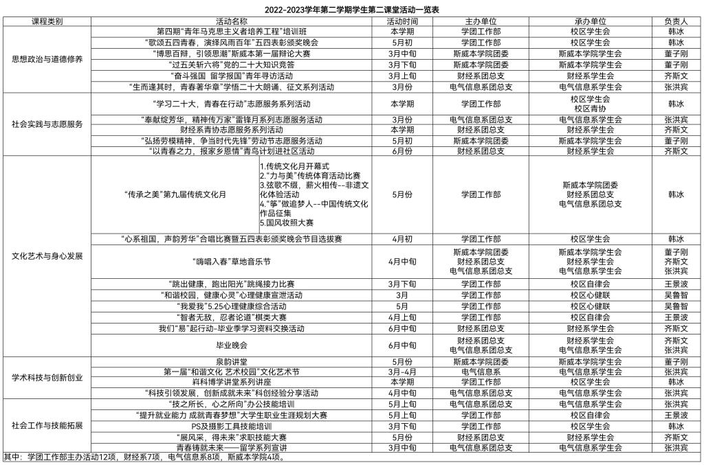 2022-2023學(xué)年第二學(xué)期學(xué)生第二課堂活動(dòng)一覽表