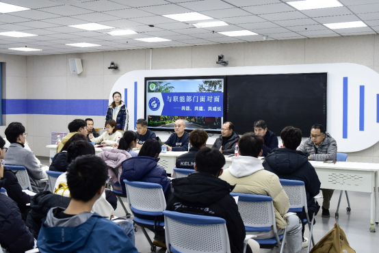 為及時關(guān)注學(xué)生需求和發(fā)展,廣泛聽取學(xué)生的建議和意見,進(jìn)一步提高學(xué)生參與學(xué)校管理的積極性,促進(jìn)學(xué)校高質(zhì)量發(fā)展,11月24日下午,校區(qū)學(xué)生會于圖書館智慧教室舉辦了“與職能部門面對面”座談會,濟(jì)南校區(qū)管委副主任兼學(xué)團(tuán)工作部主任郭加書及相關(guān)職能部門負(fù)責(zé)人、30余名學(xué)生代表參加活動?;顒佑尚^(qū)學(xué)生會主席劉博涵主持。