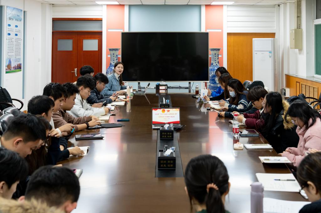 學(xué)生會主席劉博涵作“山東省‘青年馬克思主義者培養(yǎng)工程’大學(xué)生骨干培訓(xùn)班”學(xué)習(xí)交流分享,帶領(lǐng)學(xué)習(xí)了《關(guān)于深入實施青年馬克思主義者培養(yǎng)工程的意見》等相關(guān)文件精神以及省青馬培訓(xùn)班專家報告精神,就“何為青年”、“青年何為”深入交流了自己的學(xué)習(xí)體會。中國青年政治學(xué)院馬克思主義基本原理專業(yè)碩士研究生劉慧參與了在線交流。