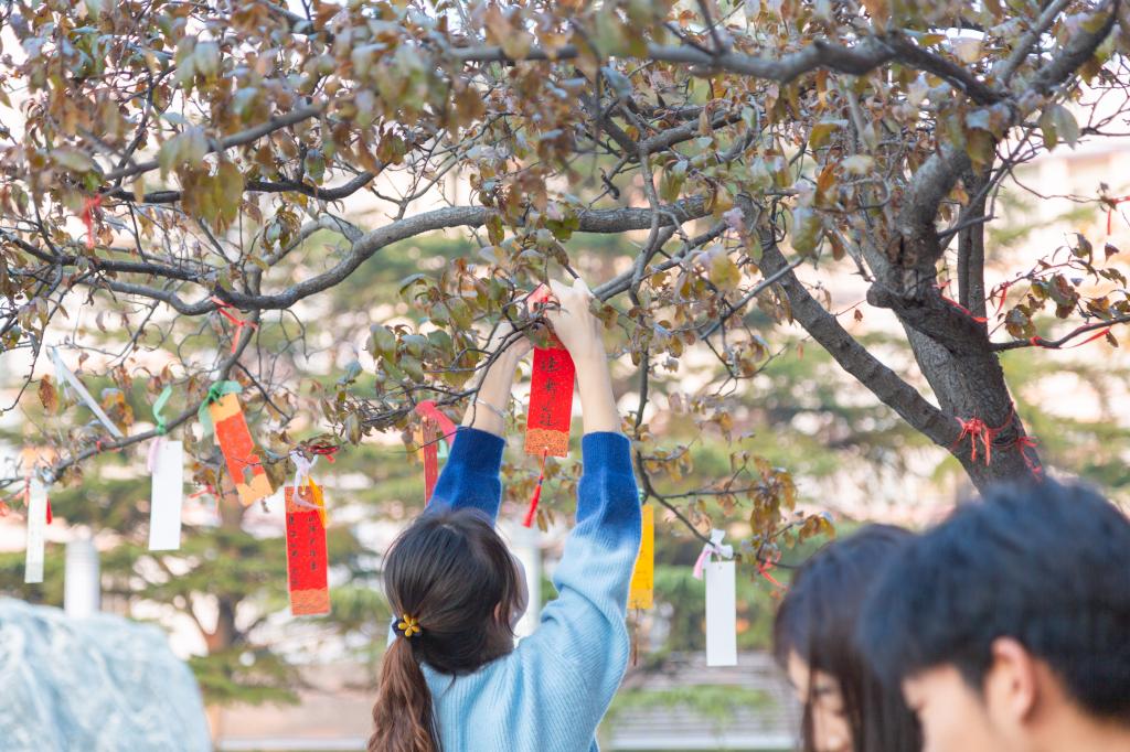 近期,濟南校區(qū)紅葉李樹枝上掛滿了一張張寫滿祝福的書簽,校區(qū)學生會“溫暖隨行,一研為定”寫書簽送祝福考研慰問活動吸引了師生們的注意?;顒訌?span lang="EN-US">11月21日開始,截止到考研前夕,400余名師生歷經(jīng)30天,制作了477份原創(chuàng)書簽。這些特色書簽,設(shè)計精美,寓意深遠,一部分作為禮物送給考研學子,一部分掛在許愿樹上激勵他們,以此為備考學子送去最誠摯的祝福。