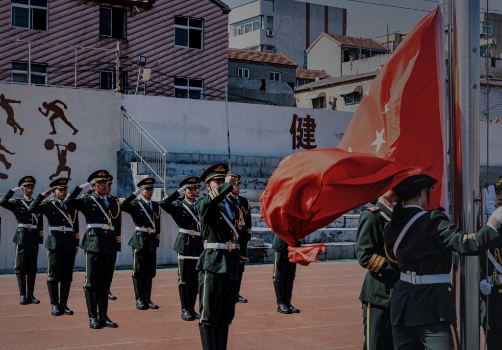 迎著清晨的朝陽(yáng),國(guó)旗護(hù)衛(wèi)隊(duì)步伐堅(jiān)定,護(hù)衛(wèi)著鮮艷的五星紅旗,昂首闊步鏗鏘前行。伴隨著雄壯激昂的《義勇軍進(jìn)行曲》,全體師生莊嚴(yán)肅立,共同凝視著五星紅旗冉冉升起。