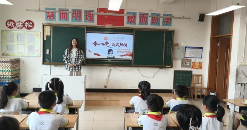 “留學(xué)報(bào)國(guó)”實(shí)踐團(tuán)隊(duì)成員到萊陽(yáng)市西關(guān)小學(xué)開展紅色革命歷史宣講活動(dòng)。團(tuán)隊(duì)成員為小學(xué)生們講述了近代以來(lái)一批批留學(xué)人員負(fù)笈求學(xué)的故事,讓“索我理想之中華”的愛國(guó)主義傳統(tǒng)在少年兒童心中生根發(fā)芽。