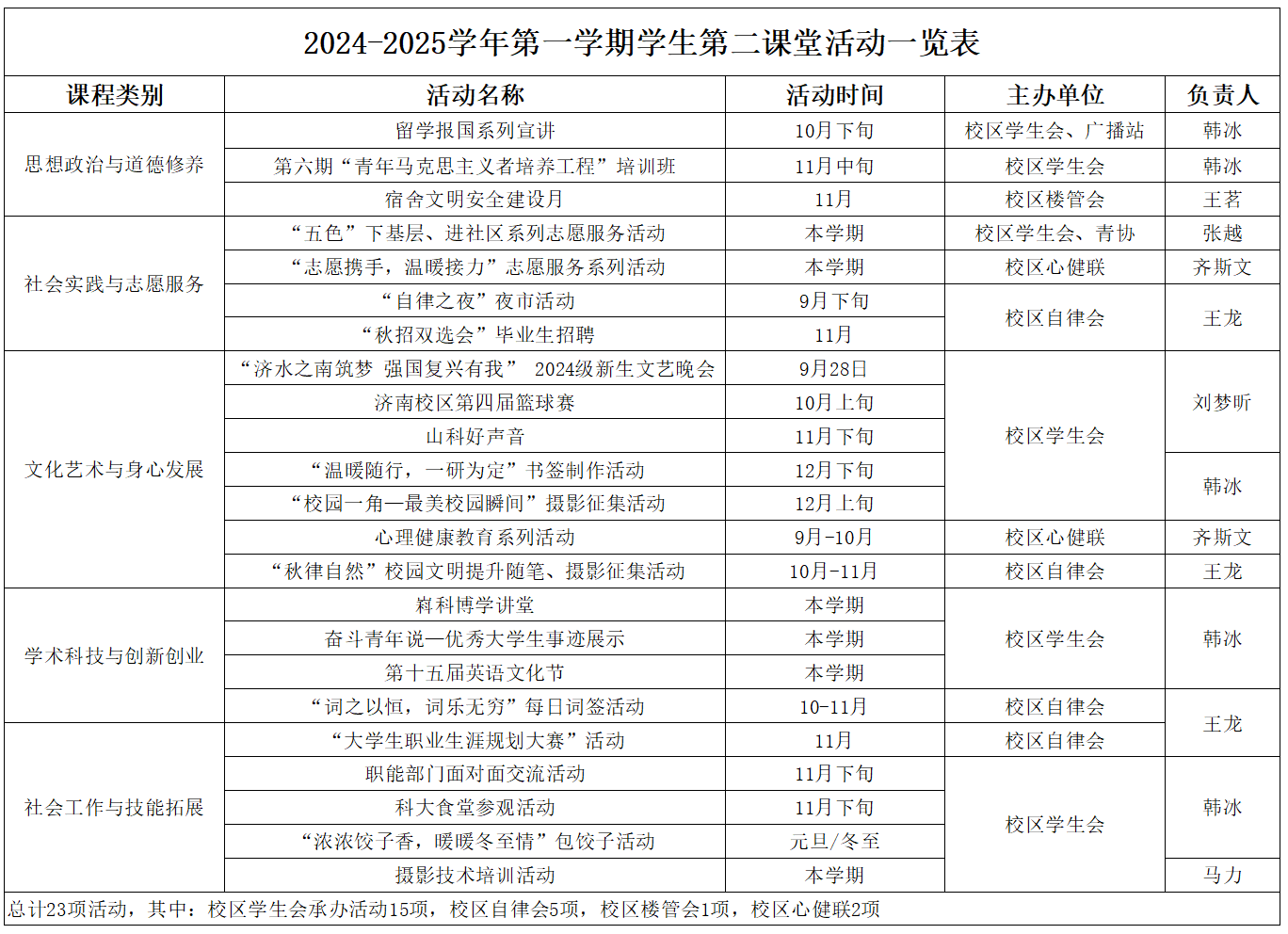 2024-2025 學(xué)年第一學(xué)期第二課堂學(xué)生活動(dòng)一覽表