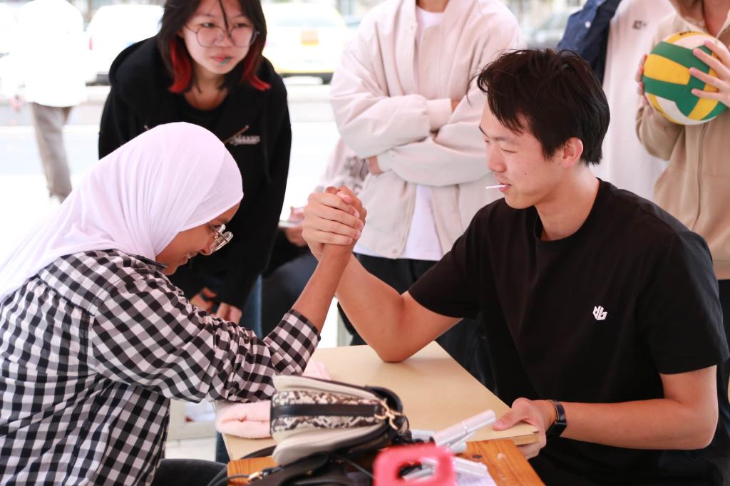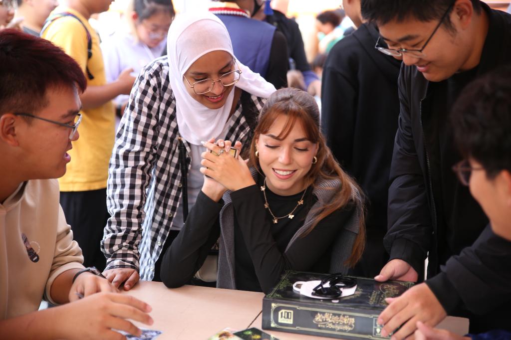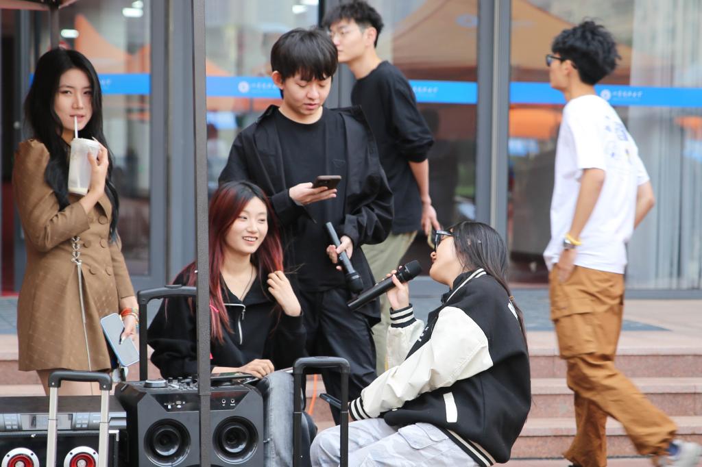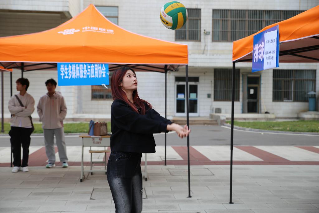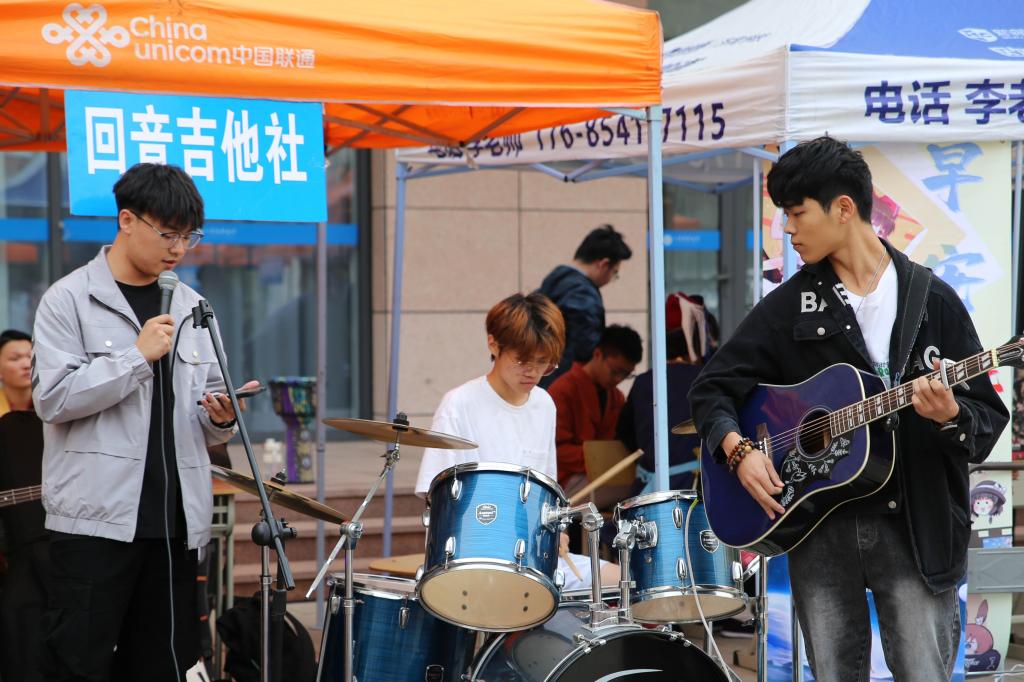 現(xiàn)場(chǎng)16個(gè)學(xué)生社團(tuán)通過海報(bào)展示、路演和互動(dòng)體驗(yàn)等多樣化形式,展示了各自的特色與魅力。現(xiàn)場(chǎng)氣氛熱烈,人潮涌動(dòng),各個(gè)社團(tuán)的報(bào)名點(diǎn)前排起了長(zhǎng)隊(duì)。國(guó)旗護(hù)衛(wèi)隊(duì)成員步伐整齊、鏗鏘有力,英姿勃發(fā)的身影透露出堅(jiān)定與莊嚴(yán);尋漫社成員化身熱門動(dòng)漫角色,與同學(xué)們親密互動(dòng),現(xiàn)場(chǎng)笑聲不斷;回音吉他社以動(dòng)人的旋律和悠揚(yáng)的歌聲引人駐足聆聽;英語(yǔ)社成員邀請(qǐng)留學(xué)生共同參與社團(tuán)展示和體驗(yàn)活動(dòng),分享彼此的故事和文化。內(nèi)容豐富、形式多樣的社團(tuán)活動(dòng)令人應(yīng)接不暇,藝體樓廣場(chǎng)被歡快的氣氛、昂揚(yáng)向上的青春熱情裝點(diǎn)得分外美麗。
