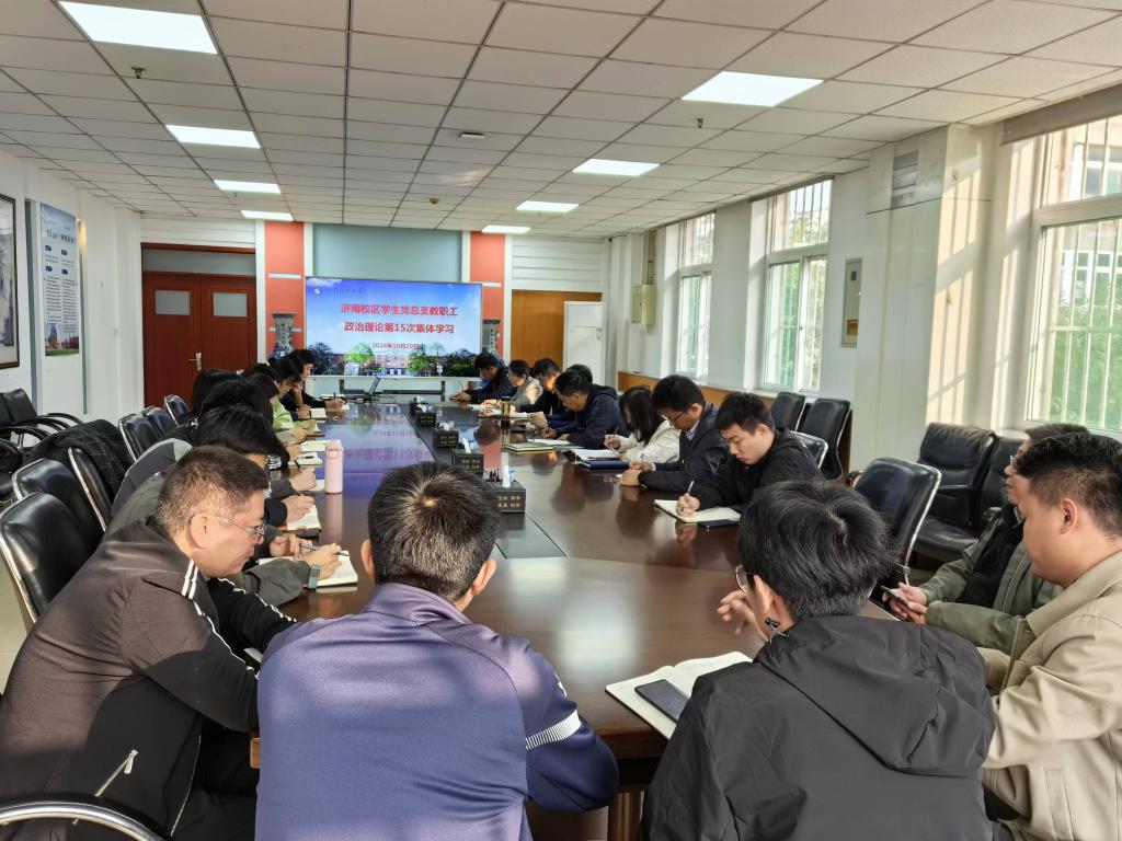 10月29日上午,濟南校區(qū)學(xué)生黨總支全體教職工在圖書館會議室開展2024年第十五次集中學(xué)習(xí)。濟南校區(qū)黨委副書記兼學(xué)團工作部主任、學(xué)生黨總支書記毛慶東主持學(xué)習(xí)活動。
