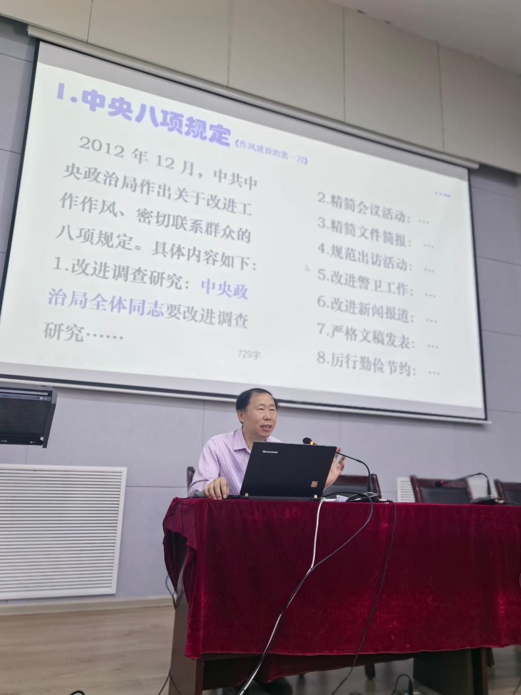 黨總支書記毛慶東以《深入解讀十八屆中央政治局關(guān)于改進(jìn)工作作風(fēng)、密切聯(lián)系群眾的八項(xiàng)規(guī)定》為題講授專題黨課。黨課主要內(nèi)容、實(shí)踐要求、實(shí)施細(xì)化三個(gè)維度,深入解讀了貫徹落實(shí)中央八項(xiàng)規(guī)定精神的重大意義和時(shí)代價(jià)值。與會(huì)人員一致認(rèn)為:中央八項(xiàng)規(guī)定是新時(shí)代全面從嚴(yán)治黨的"第一刀",是加強(qiáng)黨的作風(fēng)建設(shè)的"動(dòng)員令",必須長(zhǎng)期堅(jiān)持、嚴(yán)格執(zhí)行。