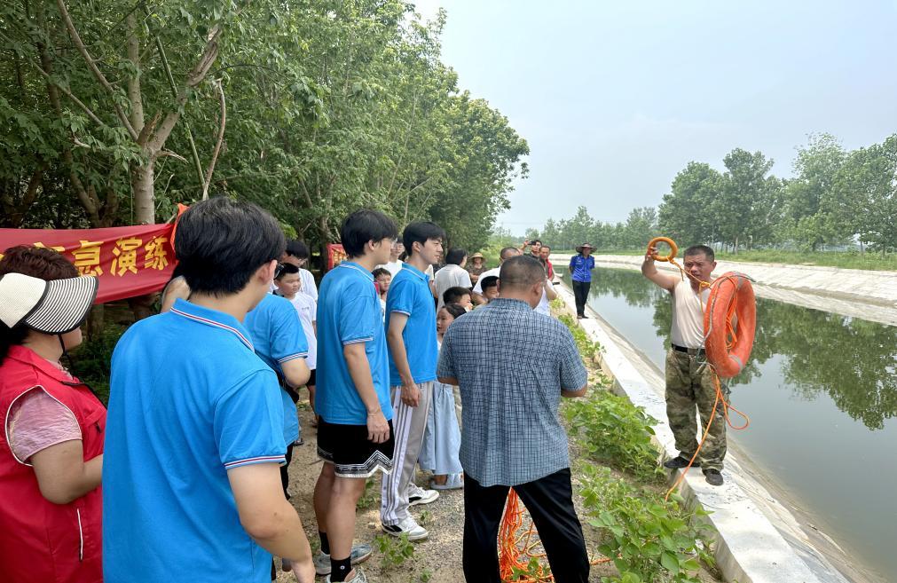 圖為歸昌鄉(xiāng)專業(yè)人員進行防溺水演練講解