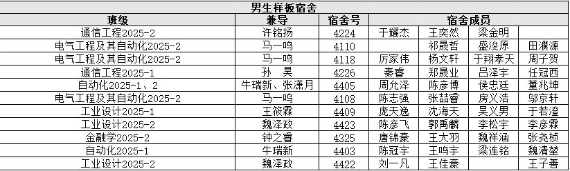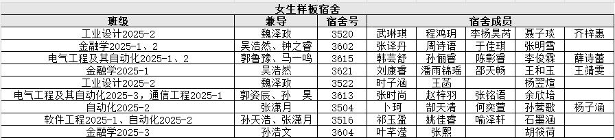 2025年級(jí)組其它流動(dòng)樣板宿舍名單如下: