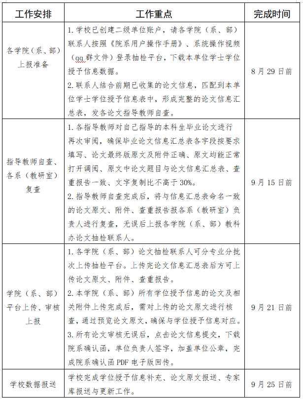(三)學(xué)校本科畢業(yè)論文抽檢工作進(jìn)度安排