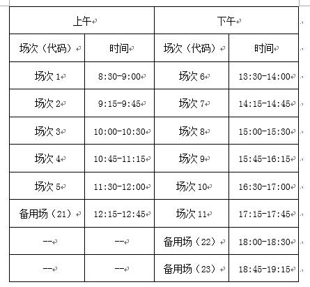 英語四級口語考試(CET-SET4)考試時間為11月18日,英語六級口語考試(CET-SET6)考試時間為11月19日,具體場次安排如下: