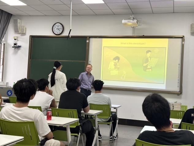 活動伊始,Edward和David為大家介紹了文化與刻板印象的基本概念,并分別展示作為英國人和美國人經(jīng)常被大家調(diào)侃的刻板印象場景, 圖文并茂列舉實(shí)例來幫助學(xué)生理解不同文化中的常見誤解和刻板印象。