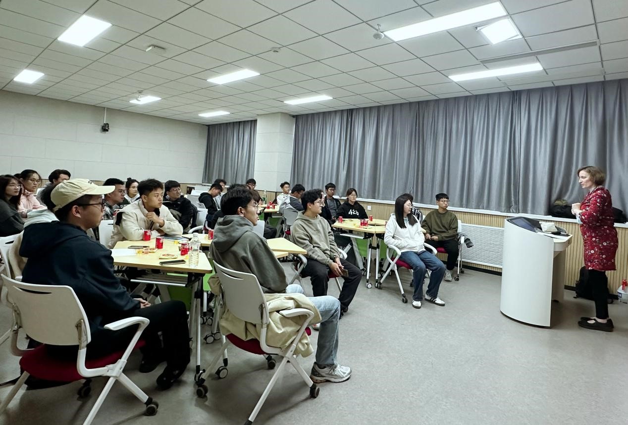 2024年10月22日,第四期英語(yǔ)角活動(dòng)由外教Mary主講,以“英語(yǔ)口音”(Accents)為主題展開(kāi),吸引了眾多學(xué)生參與,現(xiàn)場(chǎng)氣氛熱烈,學(xué)生們不僅體驗(yàn)語(yǔ)言的多樣性,更深入了解英式發(fā)音的獨(dú)特之處。