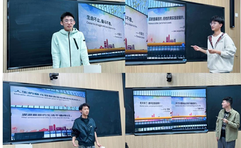 之后的分享展示環(huán)節(jié)每人都自告奮勇地上臺(tái)分享自己對(duì)所選格言的理解以及人生感悟,有同學(xué)對(duì)“渾渾噩噩的生活不值得過”這一句深有感觸,分享自己從大一擺爛迷失方向最終走出來的勵(lì)志故事,聽到類似經(jīng)歷的時(shí)候,現(xiàn)場(chǎng)響起了心有戚戚的笑聲。